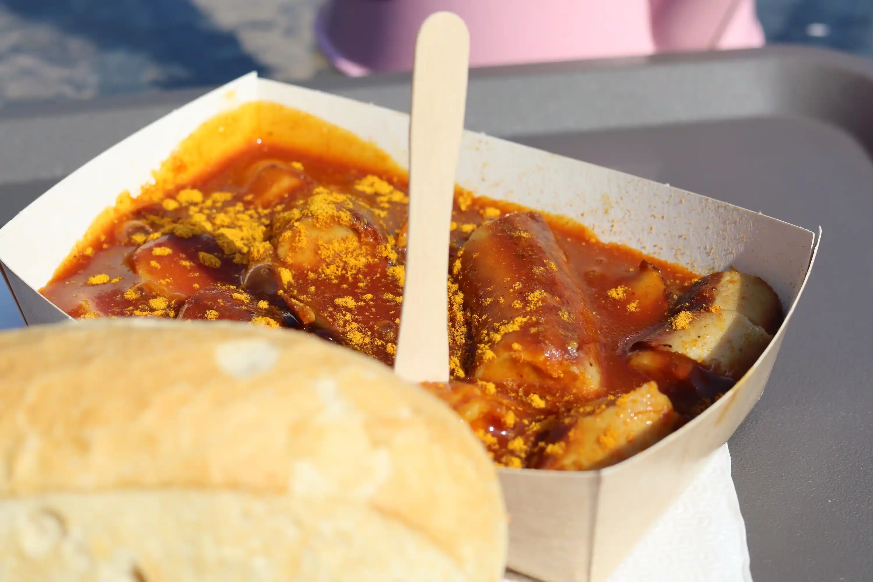 • Currywurst mit Pommes und hausgemachter Soße (Nein, das Rezept verraten wir nicht ;-)